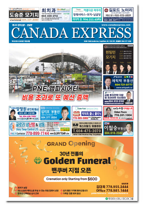 밴쿠버 노인회 (회장 유재호)는 11월 26일 오후 12시 코퀴틀람 리전 홀에서 연말 파티를 개최했다. 170여명이 참석한 가운데 유재호 회장은 “올 한 해 동안 서로에게 힘과 위로가 되었던 따뜻한 교제를 나누며 맛있는 음식과 즐거운 프로그램으로 풍성한 연말 보내시길 바랍니다”고 인사말을 전했다. 이비 주수상 축사 대독, 연아마틴 상원의원 영상 축사, 최병하 주의원 축사 박리아 보좌관 대독, 스티브 김 시의원 축사가 이어졌다. 신용주 영사는 “어르신들을 뵈면서 어머니가...