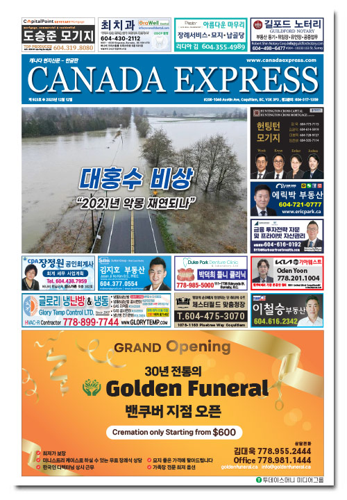 메트로 밴쿠버 주민들이 올해는 오랜만에 ‘화이트 크리스마스’를 맞을 수 있을지 관심이 모이고 있다. 크리스마스 당일 새벽, 일부 지역에서는 눈이 내릴 가능성이 있다는 예보가 나왔다. 고지대 지역 중심으로 크리스마스 아침 눈 예보 코퀴할라 하이웨이에는 현재 폭설 경보, 운전주의 연방 기상청에 따르면, 23일 밤부터 기온이 섭씨 1도까지 떨어지면서 눈발이 날릴 가능성이 있다. 특히 고지대 지역을 중심으로 크리스마스 이른 아침 눈이 쌓일 가능성도 배제할 수 없다는 전망이다. 다만...