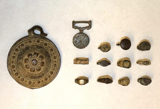 히긴스 교수는 현미경을 통해 기증품에 새겨져 있는 글씨에서 이 기증품이 중세 로마시대 때의 유물임을 알 수 있었다. 반지 등에 꽃 모양과 같은 문양이 새겨져 있었고, 그 날짜들은 다양했다.