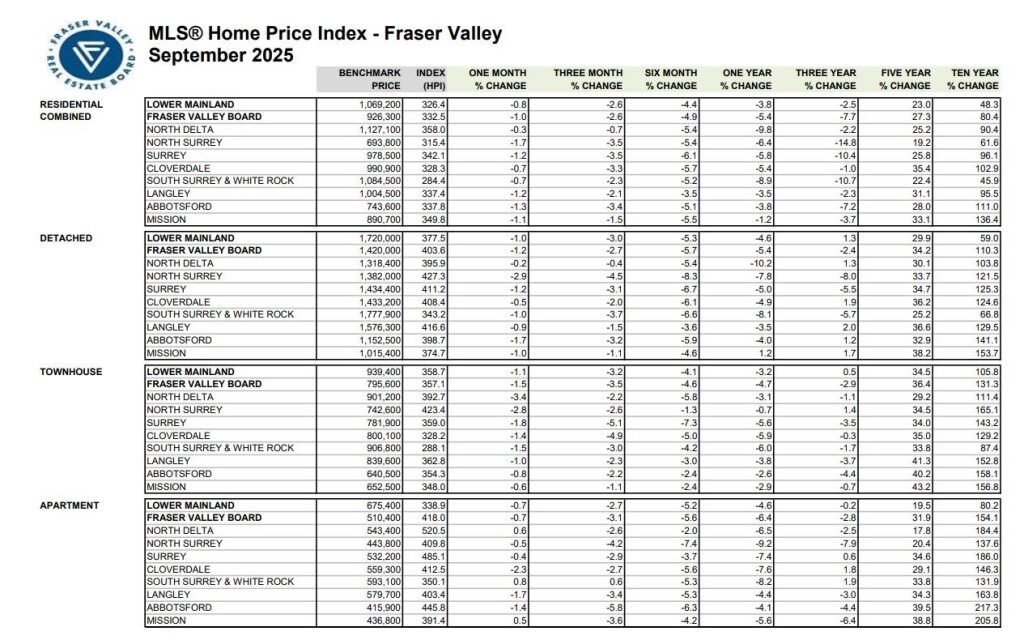 프레이저 밸리의 주택 가격이 9월에도 하락세를 이어가며 6개월 연속 내림세를 기록했다. 매물이 높은 수준을 유지하면서 가격 압박이 계속되고 있는 가운데, 일부 매수자들은 낮아진 가격을 기회로 삼아 다시 시장에 진입하는 모습을 보이고 있다.