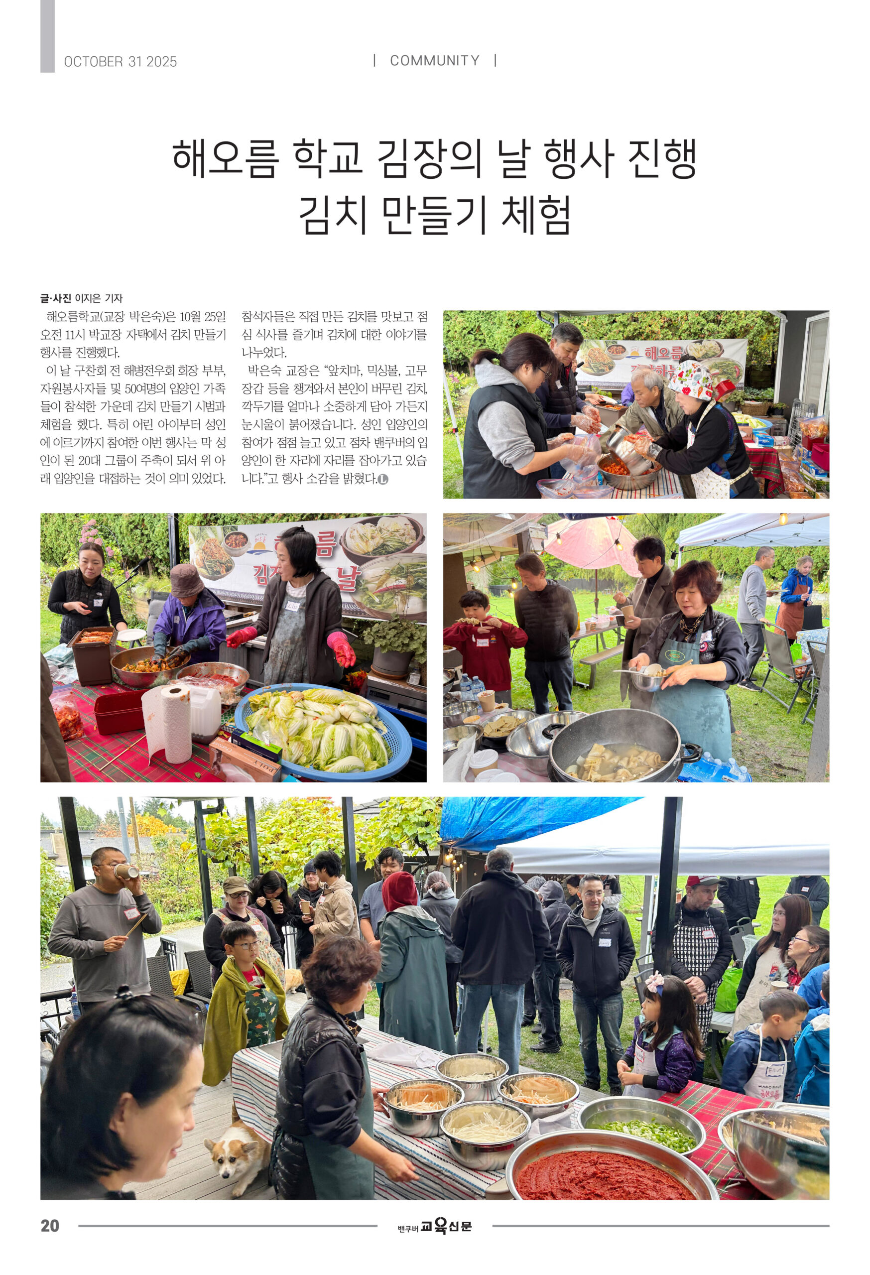 해오름학교(교장 박은숙)은 10월 25일 오전 11시 박교장 자택에서 김치 만들기 행사를 진행했다.