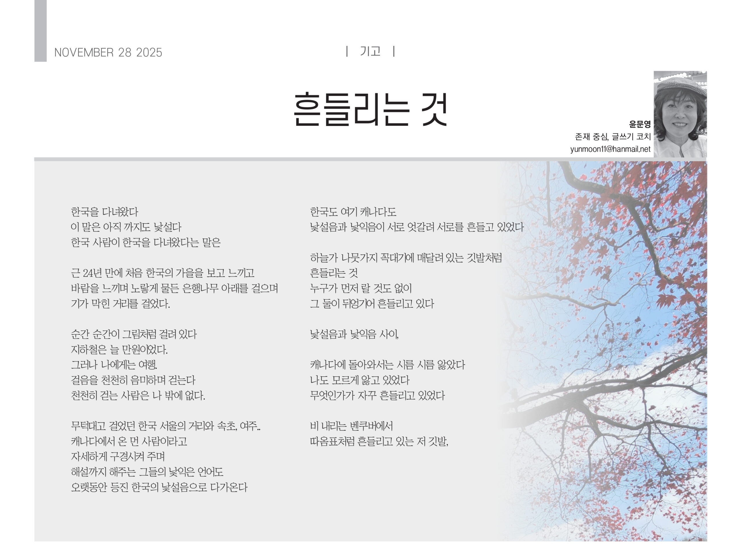 근 24년 만에 처음 한국의 가을을 보고 느끼고