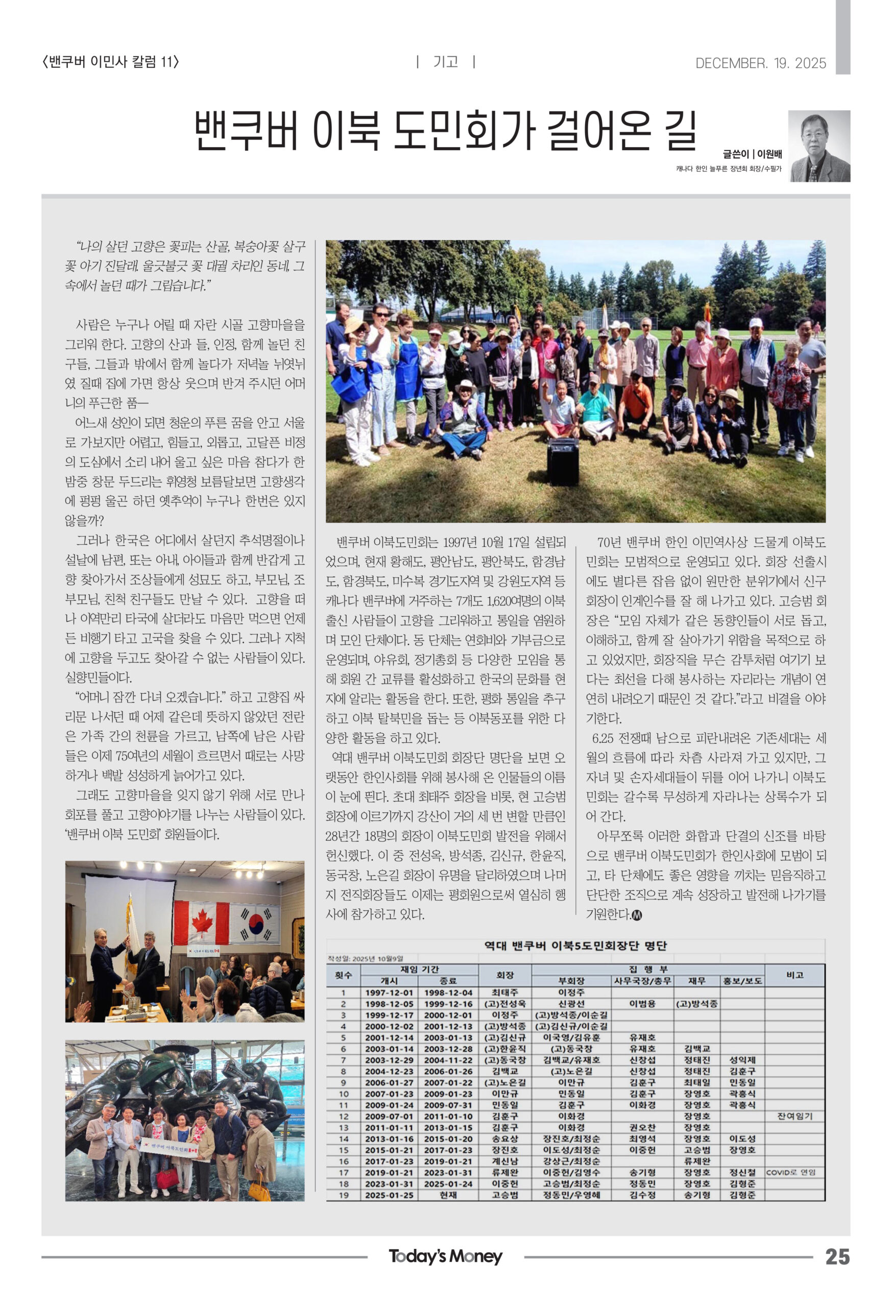 그래도 고향마을을 잊지 않기 위해 서로 만나 회포를 풀고 고향이야기를 나누는 사람들이 있다. ‘밴쿠버 이북 도민회’ 회원들이다.