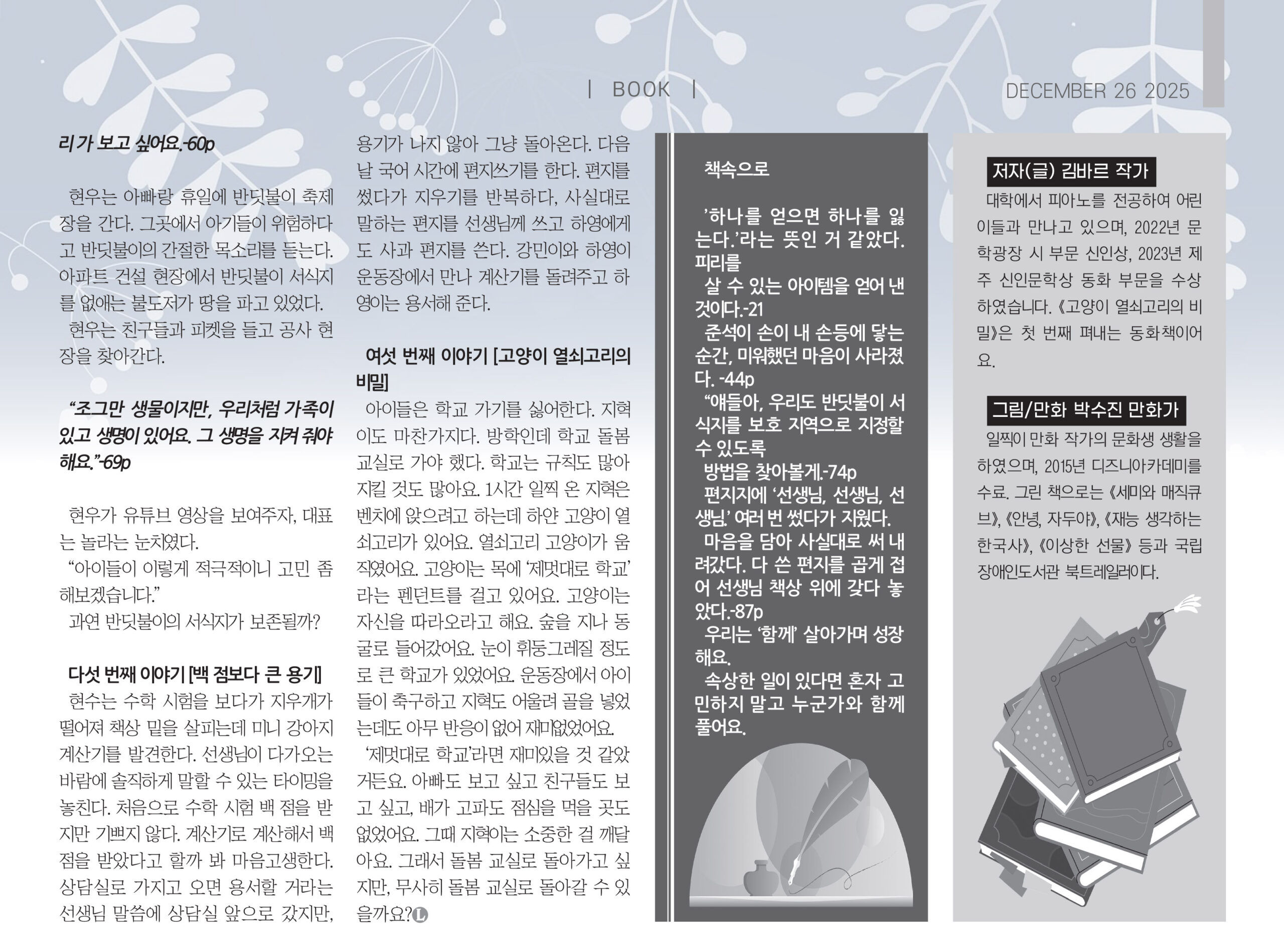 ‘주인공들은 고민을 나누고 갈등을 해결하며, 그 속에서 조금씩 성장해 가지요. 여러분도 속상한 일이 있다면 혼자 고민하지 말고 누군가와 함께 풀어 가요. 그러면 마음이 가벼워지고 성장의 씨앗이 더 단단하게 자랄 거예요.’_작가의 말 중에서