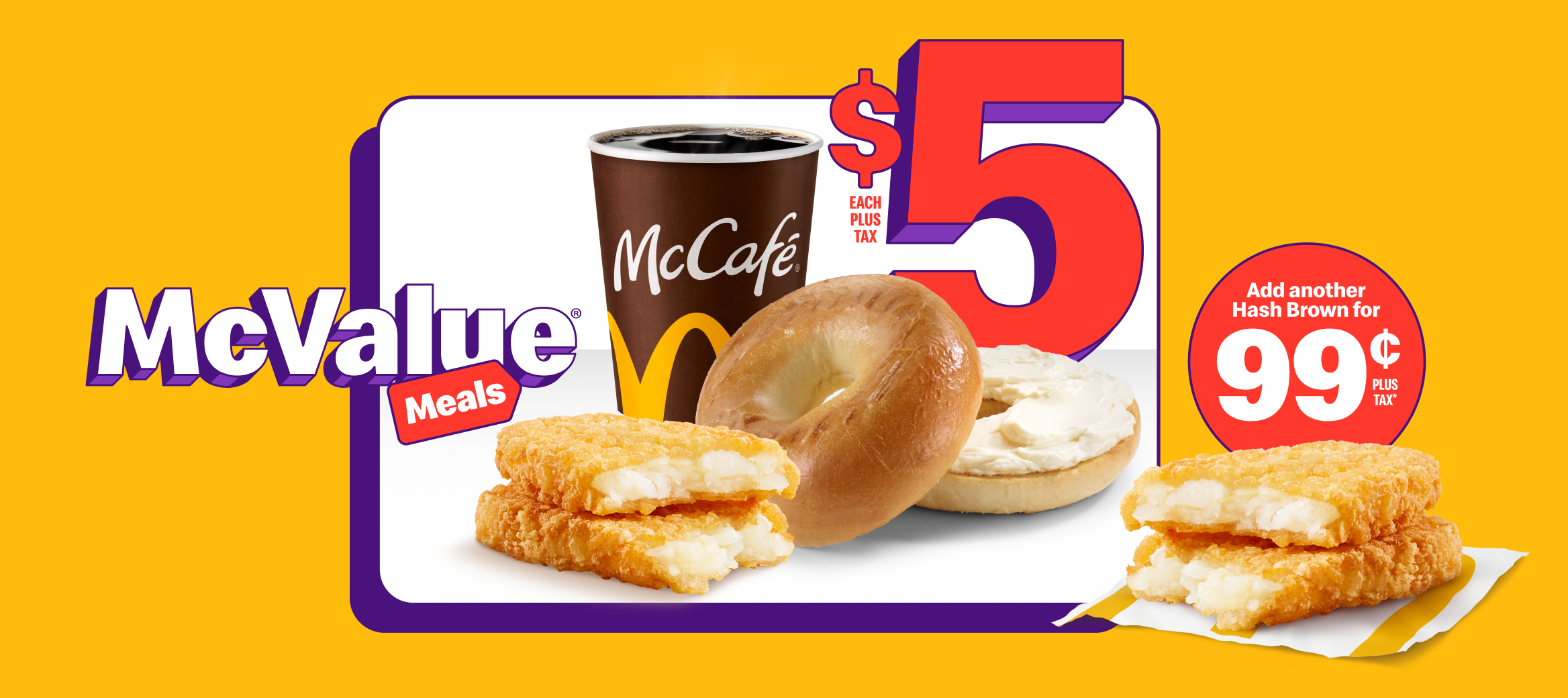 맥밸류 세트에는 주니어 치킨, 맥더블, 치킨 스낵랩 중 하나와 소형 감자튀김, 탄산음료가 포함된다. 아침 메뉴로는 소시지 맥머핀, 브렉퍼스트 부리토, 크림치즈 베이글, 소시지 맥그리들과 함께 소형 커피와 해시브라운이 제공된다.