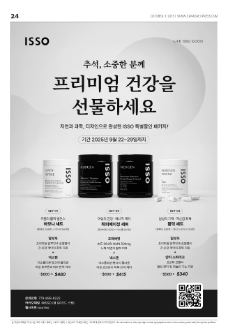 24 24 OCTOBER 3 2025 | WWW.CANADAEXPRESS.COM 본 지면에 게재된 기사, 사진, 그리고 광고 등에는 오류가 포함될 수 있습니다. 자세한 내용은 게시자에 문의하시기 바랍니다. The information on this page might contain typographical errors or inaccuracies, please verify through the publisher.