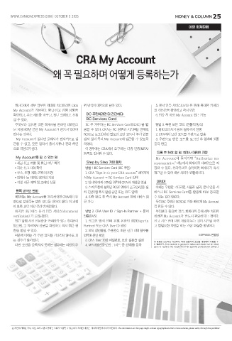 • 주소, 은행 계좌, 연락처 변경 1. CRA “Sign in to your CRA account” 페이지에 접근할 수 있어 세무 처리가 원활해진다.
