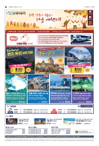 4 CANADA EXPRESS / LIFE OCTOBER 3 2025 본 지면에 게재된 기사, 사진, 그리고 광고 등에는 오류가 포함될 수 있습니다. 자세한 내용은 게시자에 문의하시기 바랍니다. The information on this page might contain typographical errors or inaccuracies, please verify through the publisher.