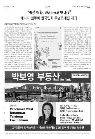 영사관, 랭리파인아트스쿨과 함께 오는 10월 2일(목) 을 보여주는 계기가 될 것이다. 또한 이번 전시는 교육