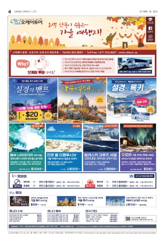 4 CANADA EXPRESS / LIFE OCTOBER 10 2025 본 지면에 게재된 기사, 사진, 그리고 광고 등에는 오류가 포함될 수 있습니다. 자세한 내용은 게시자에 문의하시기 바랍니다. The information on this page might contain typographical errors or inaccuracies, please verify through the publisher.