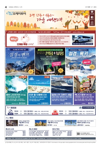 4 CANADA EXPRESS / LIFE OCTOBER 17 2025 본 지면에 게재된 기사, 사진, 그리고 광고 등에는 오류가 포함될 수 있습니다. 자세한 내용은 게시자에 문의하시기 바랍니다. The information on this page might contain typographical errors or inaccuracies, please verify through the publisher.