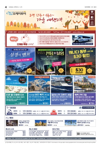 4 CANADA EXPRESS / LIFE NOVEMBER 28 2025 본 지면에 게재된 기사, 사진, 그리고 광고 등에는 오류가 포함될 수 있습니다. 자세한 내용은 게시자에 문의하시기 바랍니다. The information on this page might contain typographical errors or inaccuracies, please verify through the publisher.