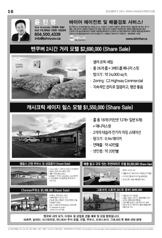 16 DECEMBER 5 2025 | WWW.CANADAEXPRESS.COM 본 지면에 게재된 기사, 사진, 그리고 광고 등에는 오류가 포함될 수 있습니다. 자세한 내용은 게시자에 문의하시기 바랍니다. The information on this page might contain typographical errors or inaccuracies, please verify through the publisher.