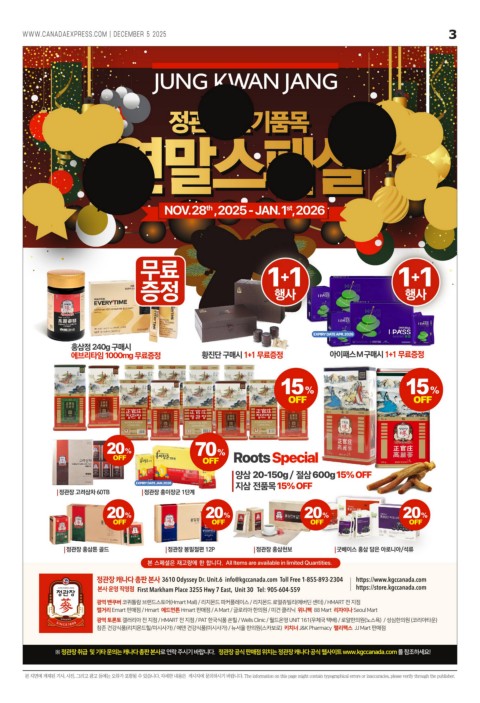 WWW.CANADAEXPRESS.COM | DECEMBER 5 2025 3 본 지면에 게재된 기사, 사진, 그리고 광고 등에는 오류가 포함될 수 있습니다. 자세한 내용은 게시자에 문의하시기 바랍니다. The information on this page might contain typographical errors or inaccuracies, please verify through the publisher.