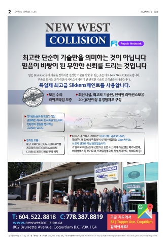 2 CANADA EXPRESS / LIFE DECEMBER 5 2025 본 지면에 게재된 기사, 사진, 그리고 광고 등에는 오류가 포함될 수 있습니다. 자세한 내용은 게시자에 문의하시기 바랍니다. The information on this page might contain typographical errors or inaccuracies, please verify through the publisher.