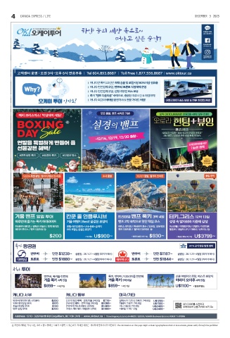 4 CANADA EXPRESS / LIFE DECEMBER 5 2025 본 지면에 게재된 기사, 사진, 그리고 광고 등에는 오류가 포함될 수 있습니다. 자세한 내용은 게시자에 문의하시기 바랍니다. The information on this page might contain typographical errors or inaccuracies, please verify through the publisher.