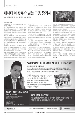 캐나다의 9월 고용 시장이 예상치를 뛰어넘는 강한 고 전망했다. 건강관리 및 사회복지 분야에서도 1만 4천 개, 농업