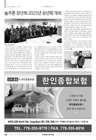 캐나다 한인 늘푸른 장년회(회장 이원배)의 2025년 회 전 이원배 회장과 단독으로 만나 늘푸른 장년회에 후원자들의 경로효친 사상에 진심으로 감사를 표한